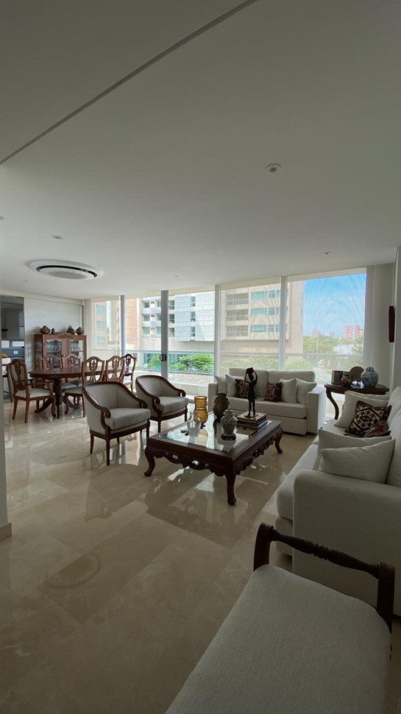 Apartamento en venta en el exclusivo sector de Riomar, norte de Barranquilla. Este inmueble cuenta con un área construida de 154 m² distribuidos en tres habitaciones con baño y vestier, sala-comedor, cocina integral tipo americano, baño social, balcón, área de lab (...)